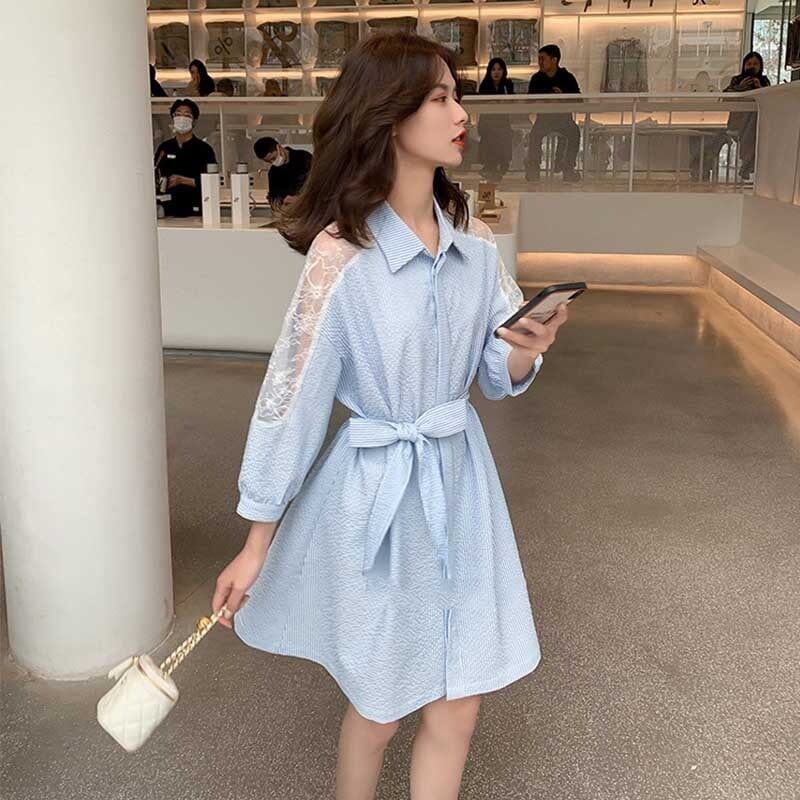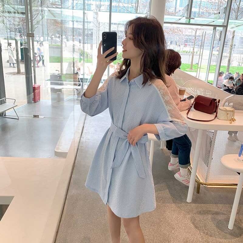 エレガント 美感いっぱい ストライプ 切り替え ワンピース<ins-3162>