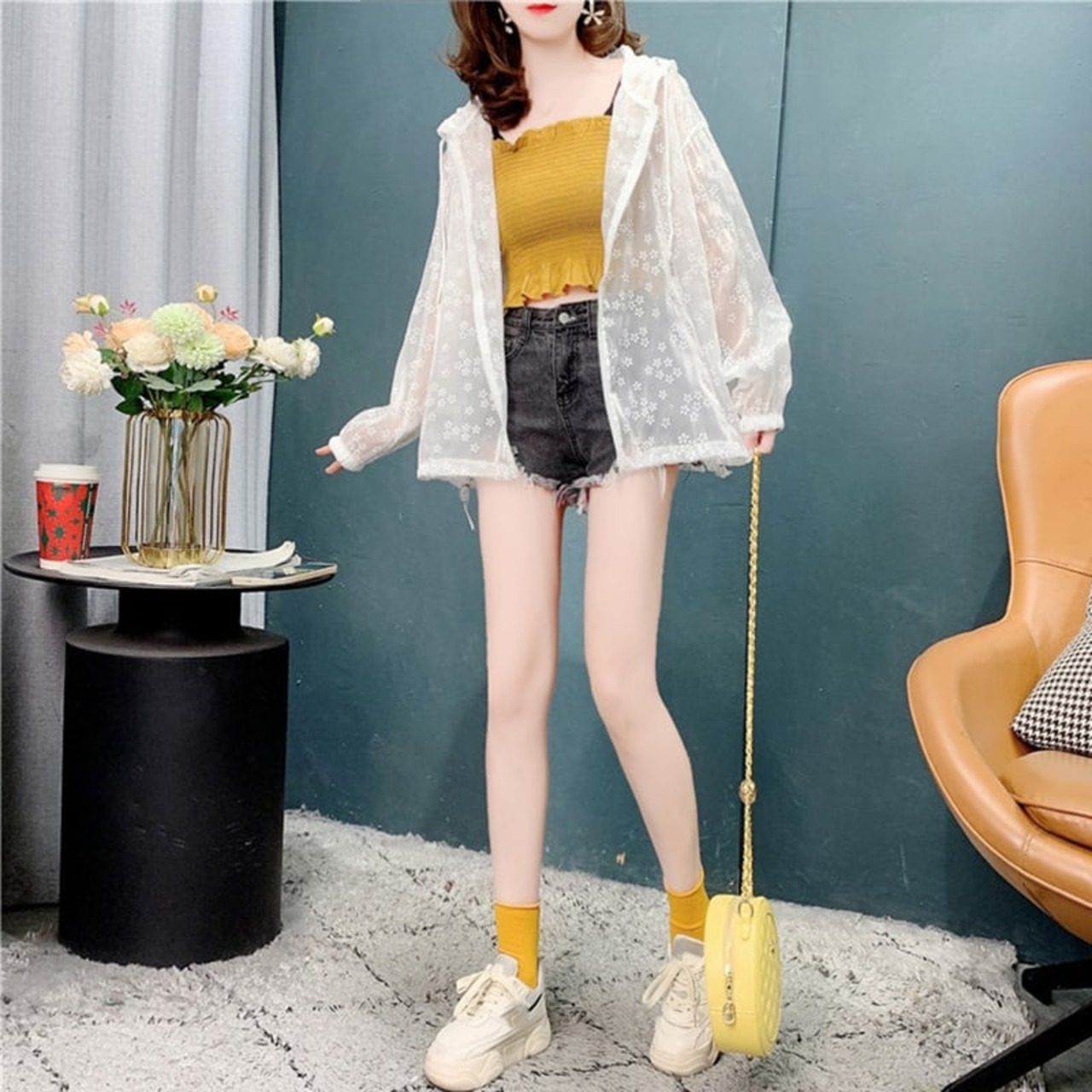 スタイリッシュ 透け感 日焼け対策 透かし彫り ジャケット ブルゾン<ins-3109>