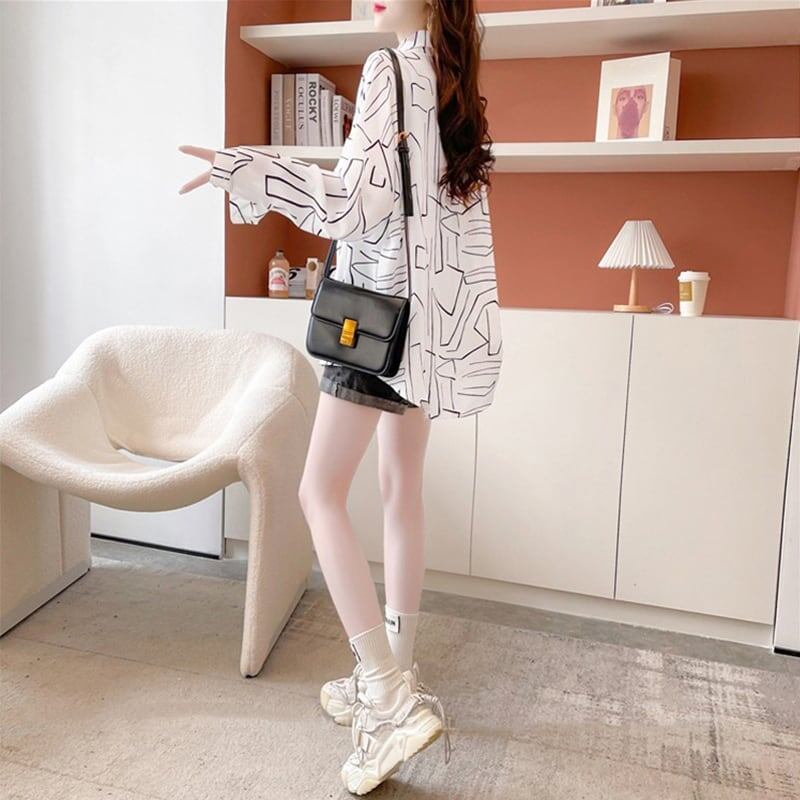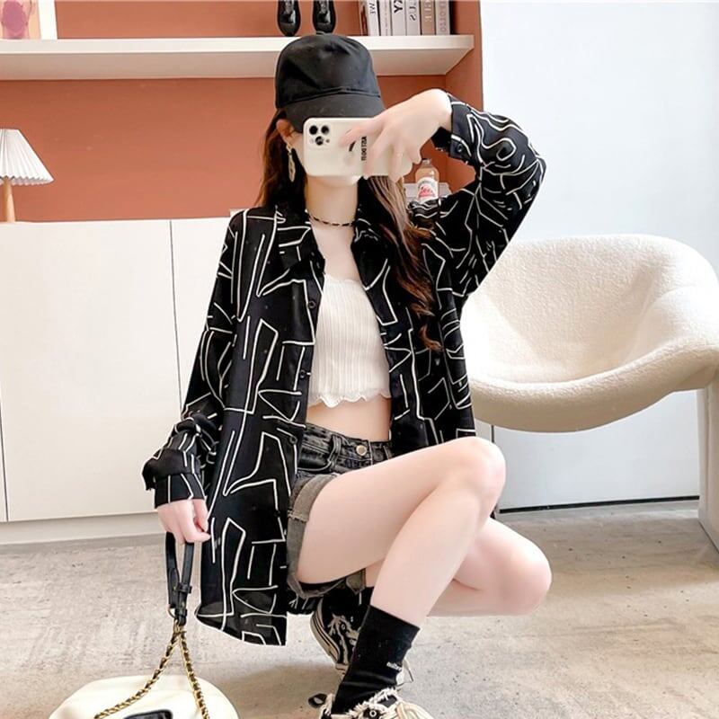 デザイン感 チャーミング プリント シャツ ブラウス トップス<ins-3137>