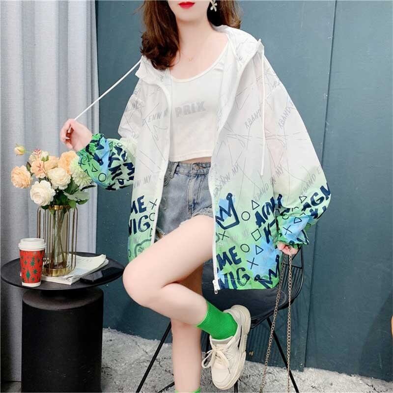 ゆったり感アップ 日焼け対策 グラデーション ジャケット ブルゾン<ins-3156>