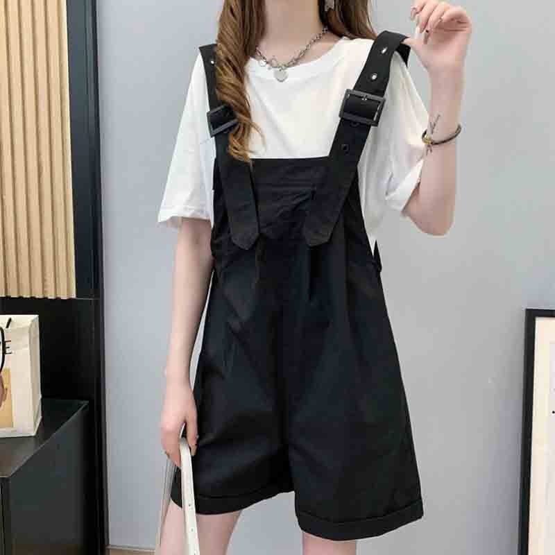 スタイリッシュ 好感度満載 切り替え ブラウス+サロペット セットアップ<ins-3123>