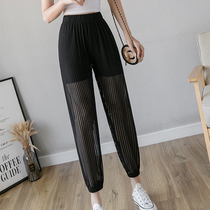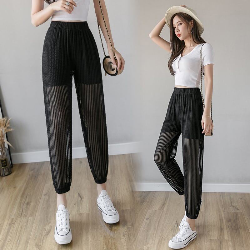 カジュアル 着心地抜群 チュール ハイウエスト パンツ ボトムス<ins-3112>