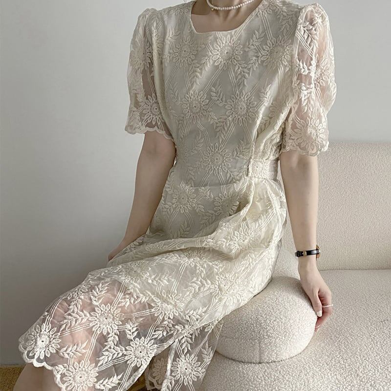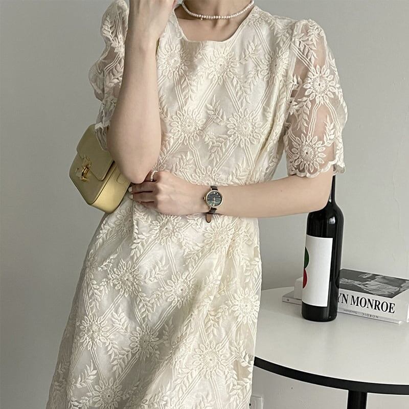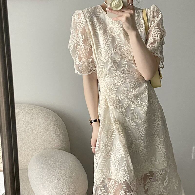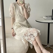 フランススタイル チャーミング 切り替え レースワンピース<ins-3188>