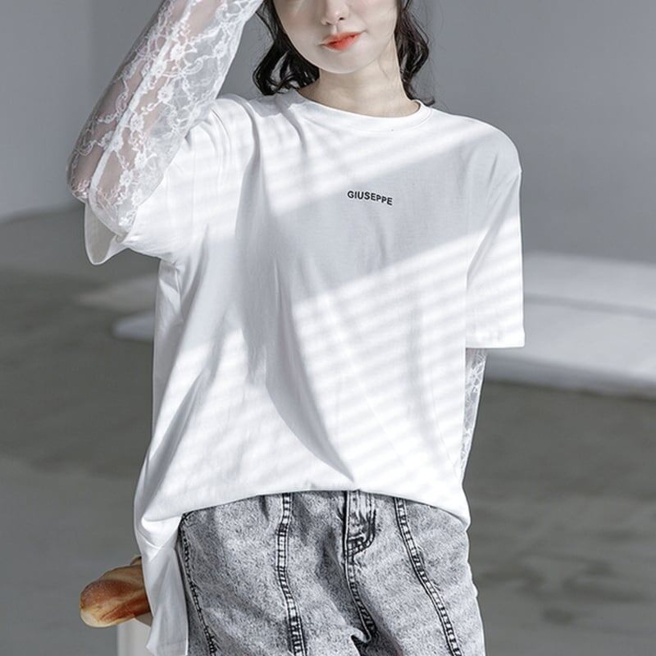 清純甘くて女子力UP 美感いっぱい 切り替え Tシャツ カットソー<ins-3020>