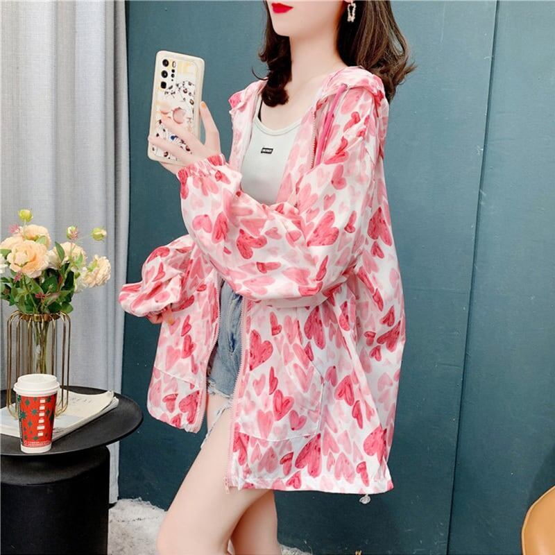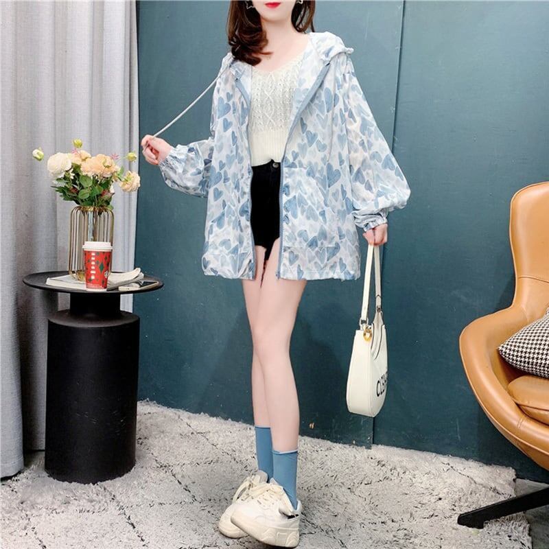 カジュアル 日焼け対策 プリント ジャケット ブルゾン アウター<ins-3041>