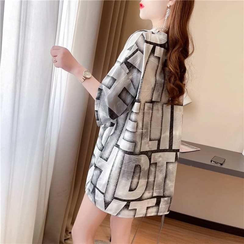 ゆったり感アップ カジュアル アルファベット Tシャツ カットソー<ins-3028>