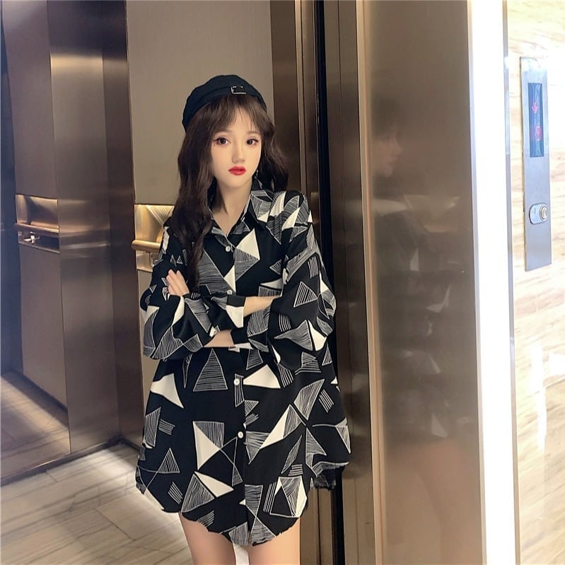 ルーズ 日焼け対策 レトロ プリント ジャケット ブルゾン アウター<ins-3016>