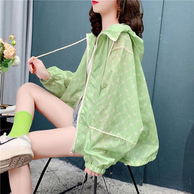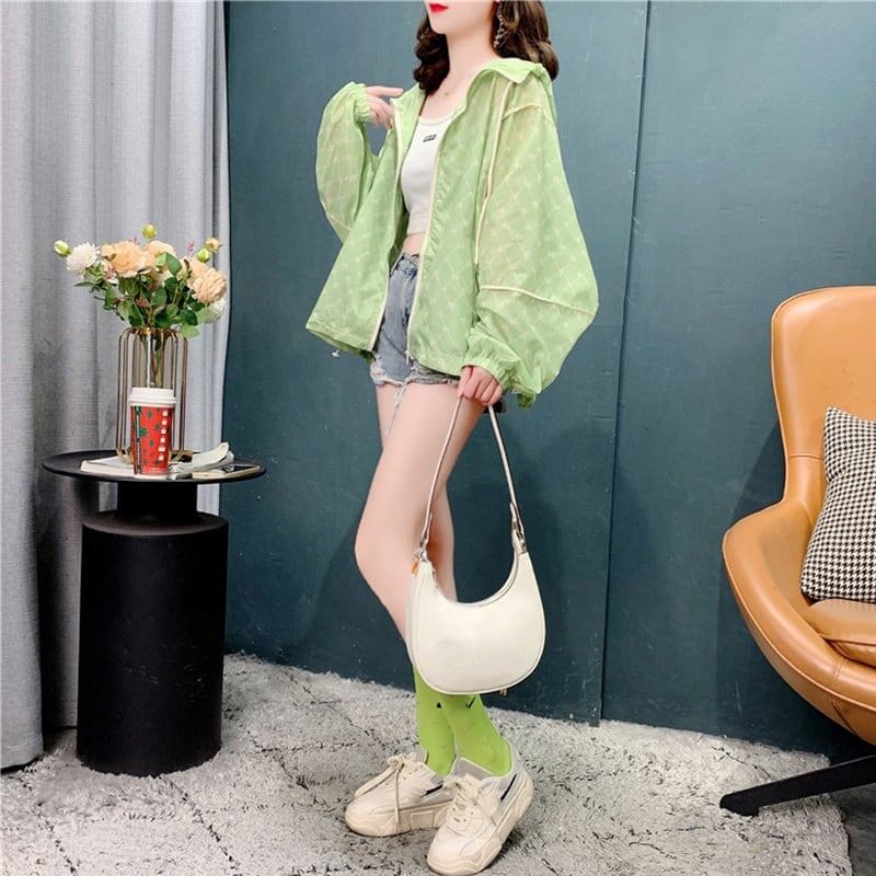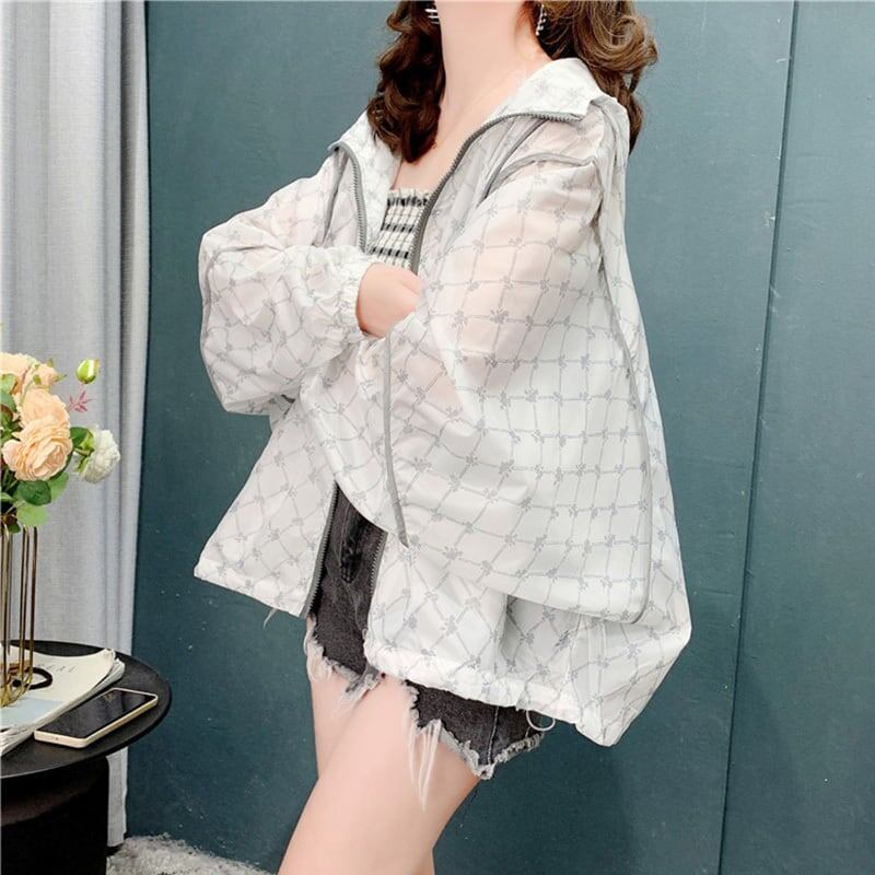 カジュアル 日焼け対策 チェック柄 ジャケット ブルゾン<ins-3037>