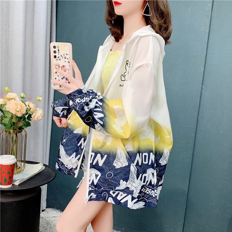 カジュアル 日焼け対策 プリント 切り替え Tシャツ カットソー<ins-2999>