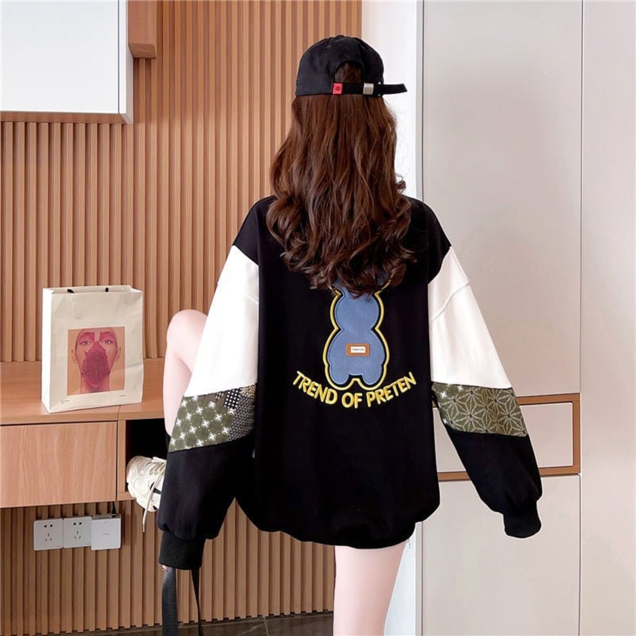 オシャレ感たっぷり 美人度アップ プリント スウェット パーカー<ins-3010>