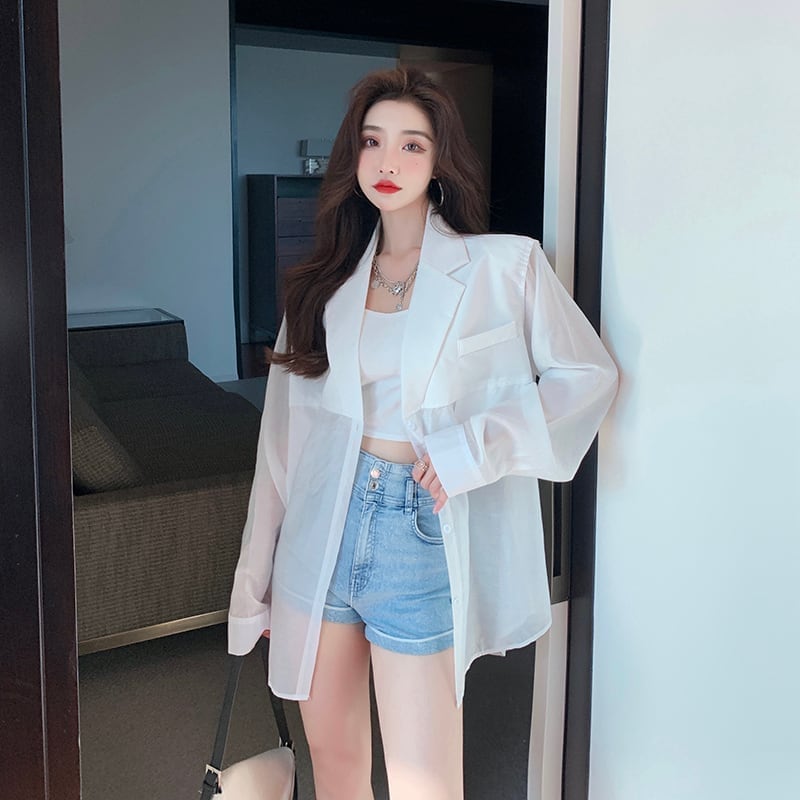 カジュアル 透け感 日焼け対策 切り替え ジャケット ブルゾン<ins-2980>