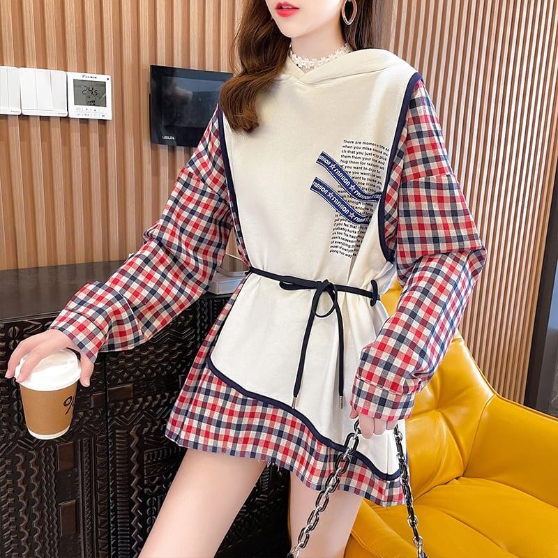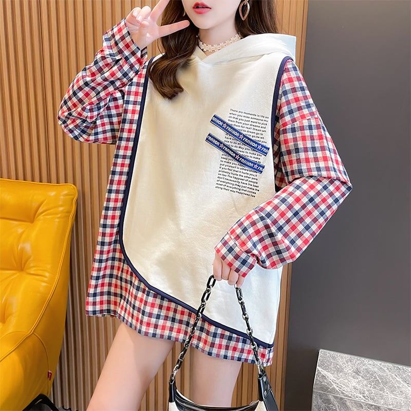 着せ 合わせやすい デザイン感 チェック柄 スウェット パーカー<ins-2989>