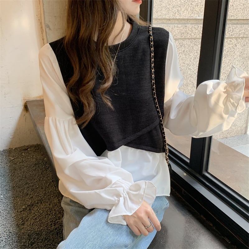 好感度満載 着心地抜群 3色選択可 切り替え シャツ ブラウス<ins-2943>