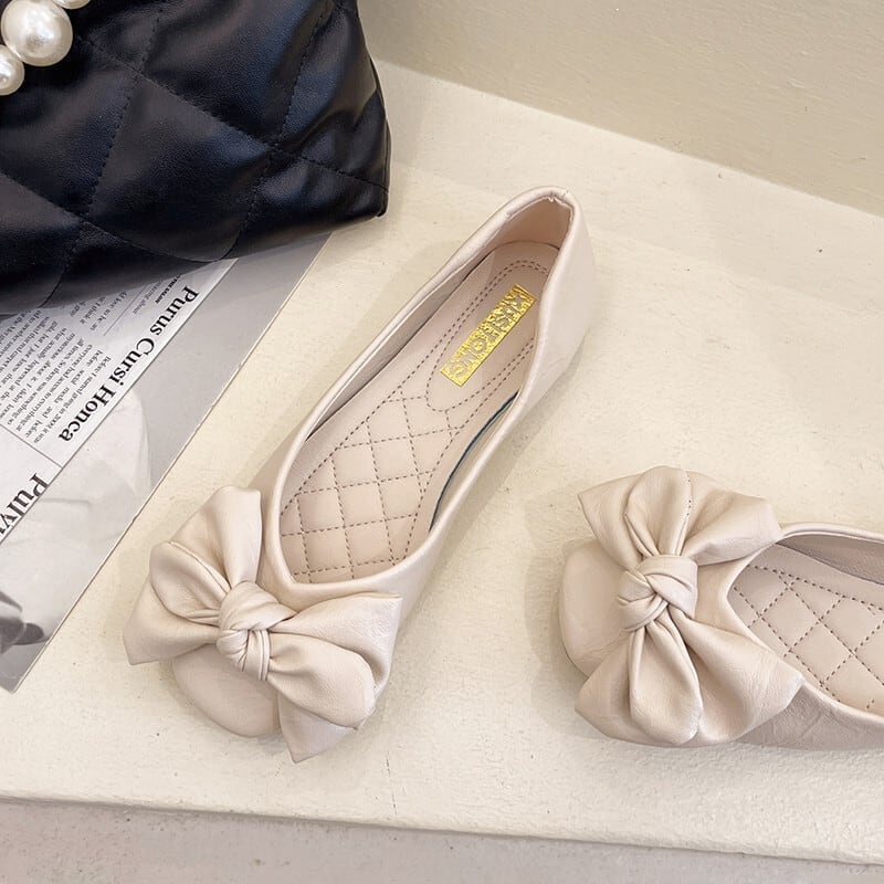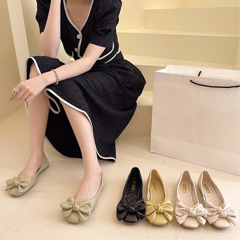 デザイン感 合わせやすい 蝶結び 無地 スクエアトゥ シューズ<ins-3113>