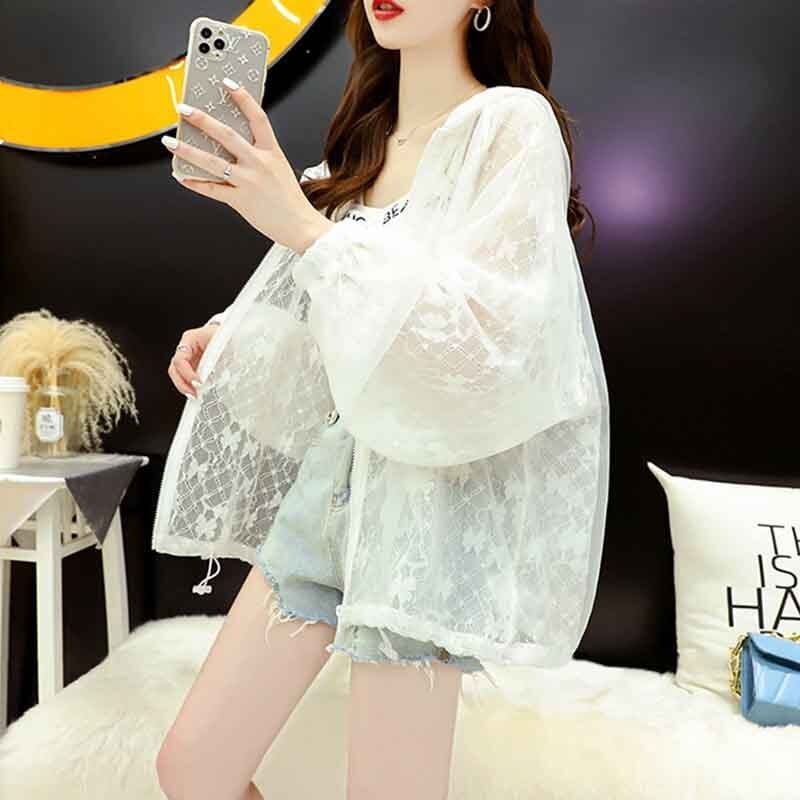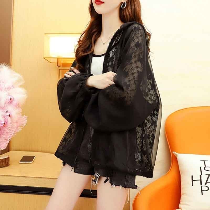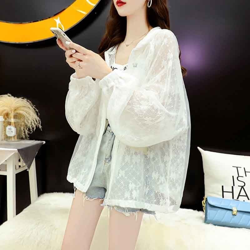 着心地抜群 透け感 日焼け対策 ランタンスリーブ ジャケット ブルゾン<ins-2924>