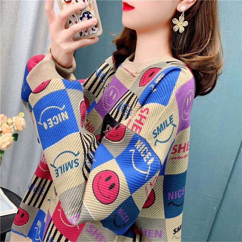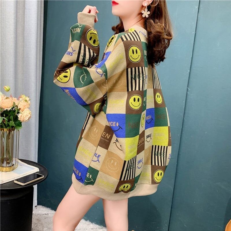着心地抜群 女性力を高める ラウンドネック プリント スウェット パーカー<ins-2826>