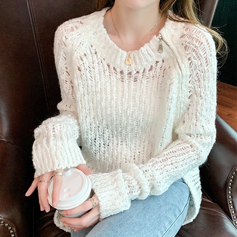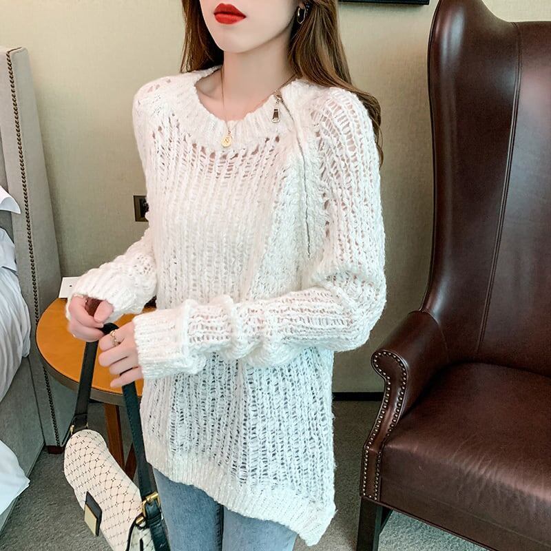 オシャレ度満点 日焼け対策 透かし彫り 切り替え シャツ ブラウス<ins-2946>