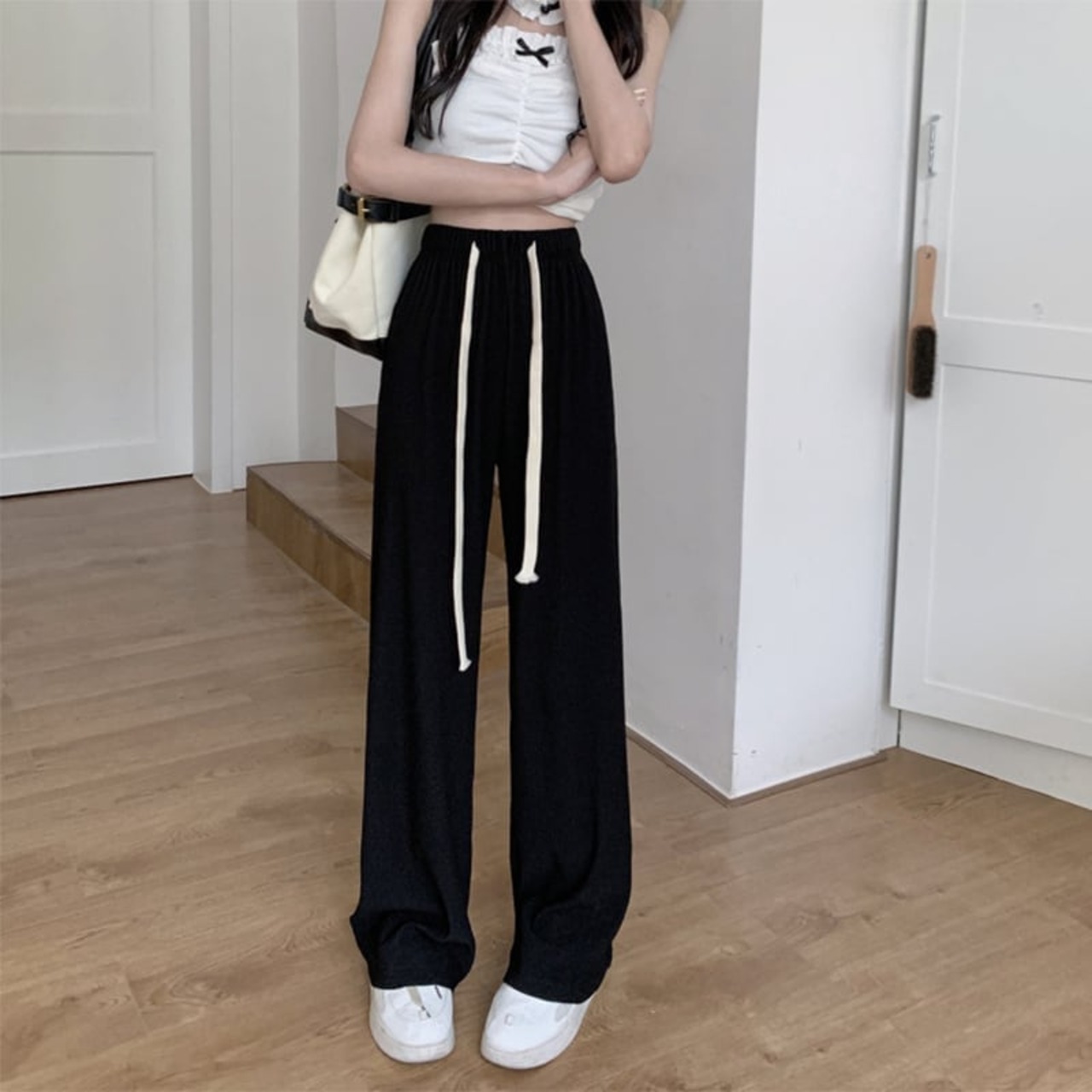 ルーズ ファッション 引き紐 ワイドパンツ ボトムス<ins-3032>