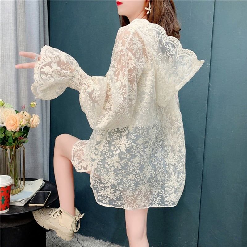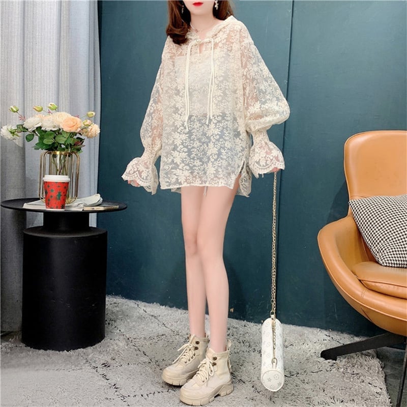 好感度満載 日焼け対策 透け感 切り替え シャツ ブラウス トップス<ins-2859>