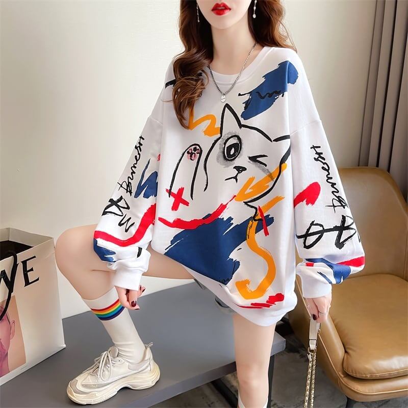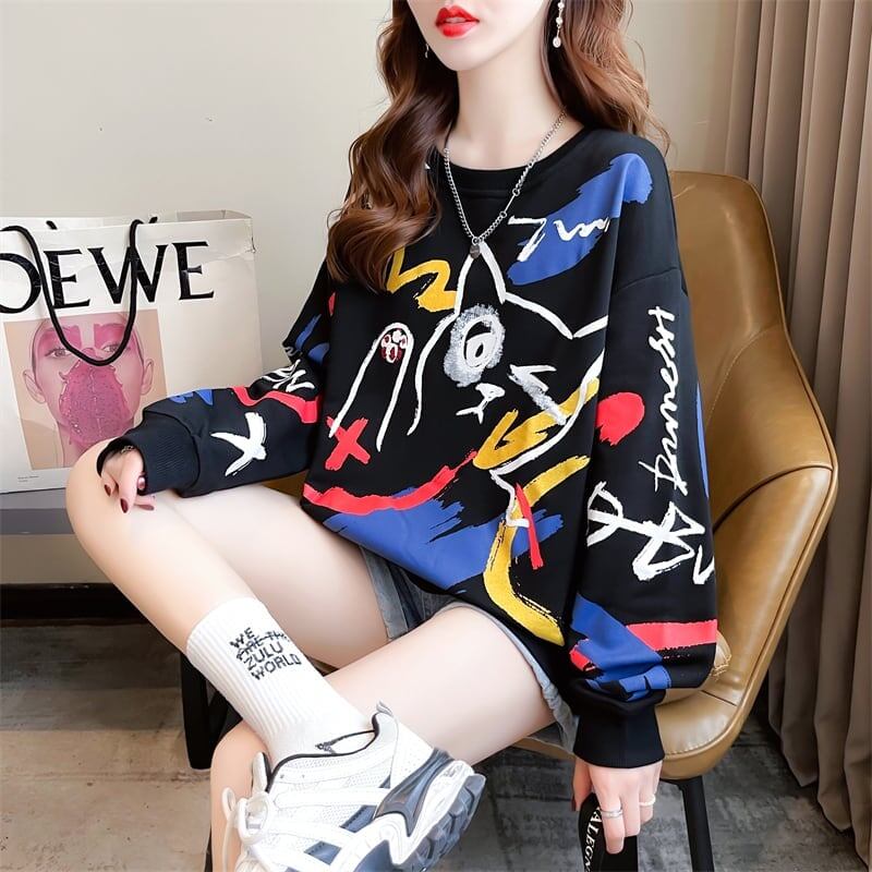 美人度アップ ファッション プリント スウェット パーカー<ins-3694>