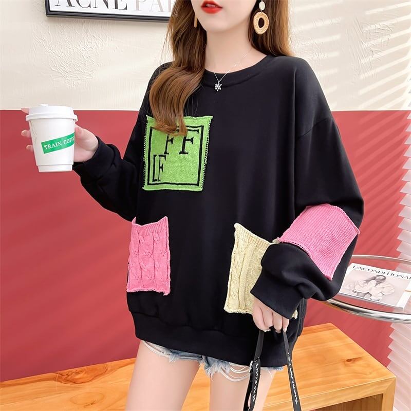美感いっぱい 好感度満載 3色選択可 プリント スウェット パーカー<ins-3697>