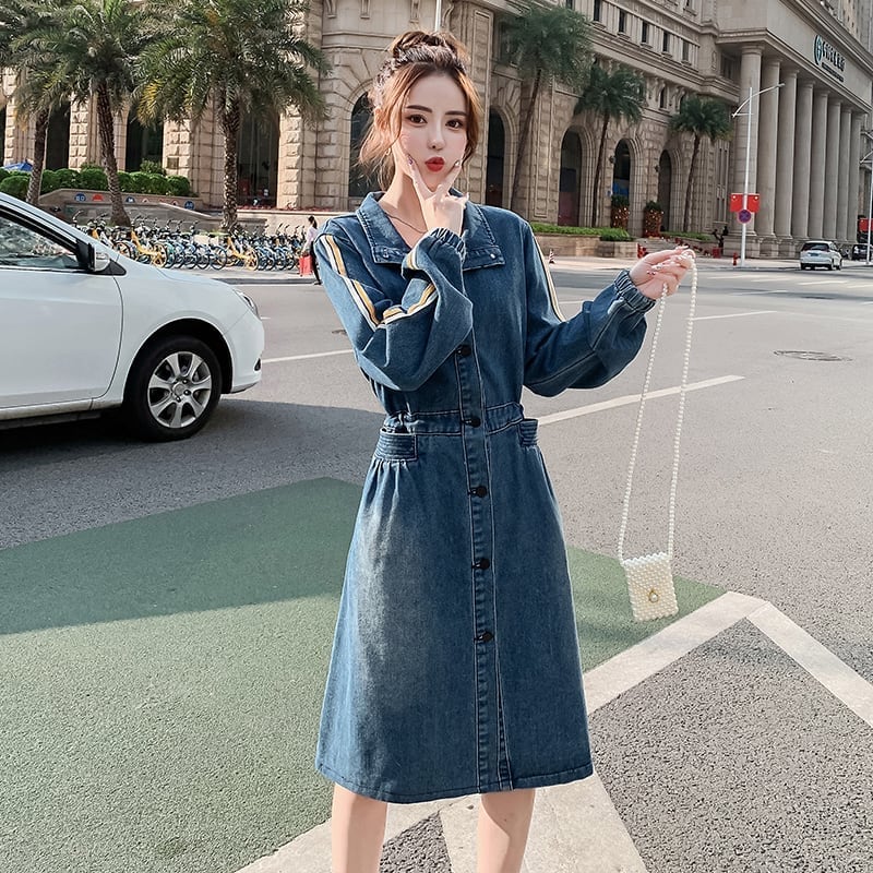 着痩せ 美人度アップ 切り替え 長袖 ワンピース<ins-2917>