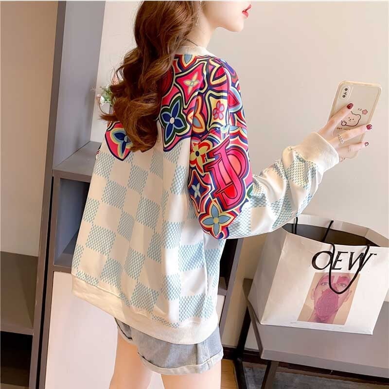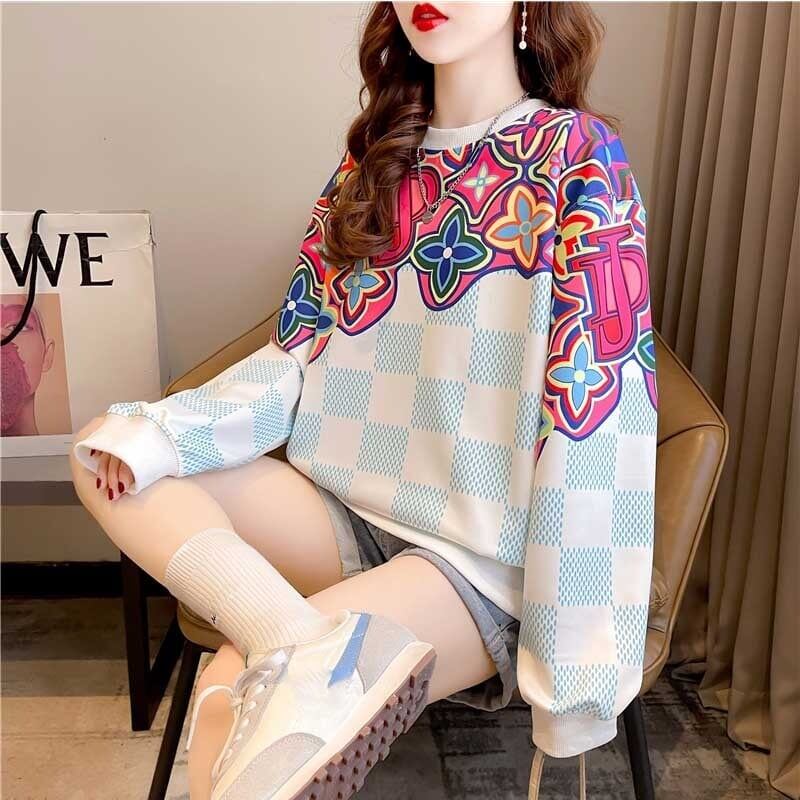 スタイリッシュ 女性力を高める ラウンドネック プリント スウェット パーカー<ins-2791>