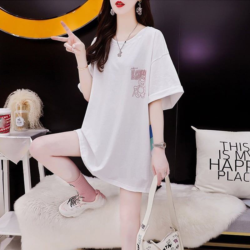 スタイリッシュ 一目惚れ 切り替え プリント Tシャツ カットソー<ins-3654>