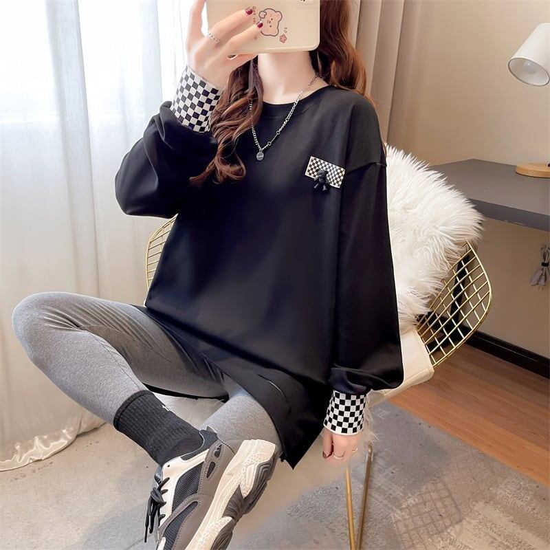 スタイリッシュ 一目惚れ 切り替え プリント Tシャツ カットソー<ins-3675>