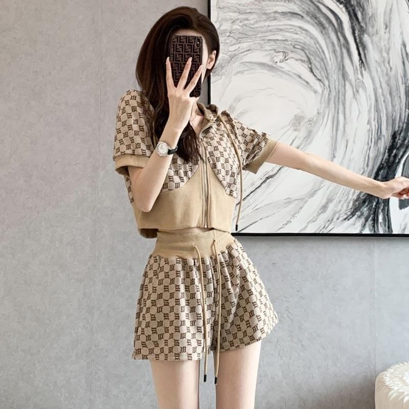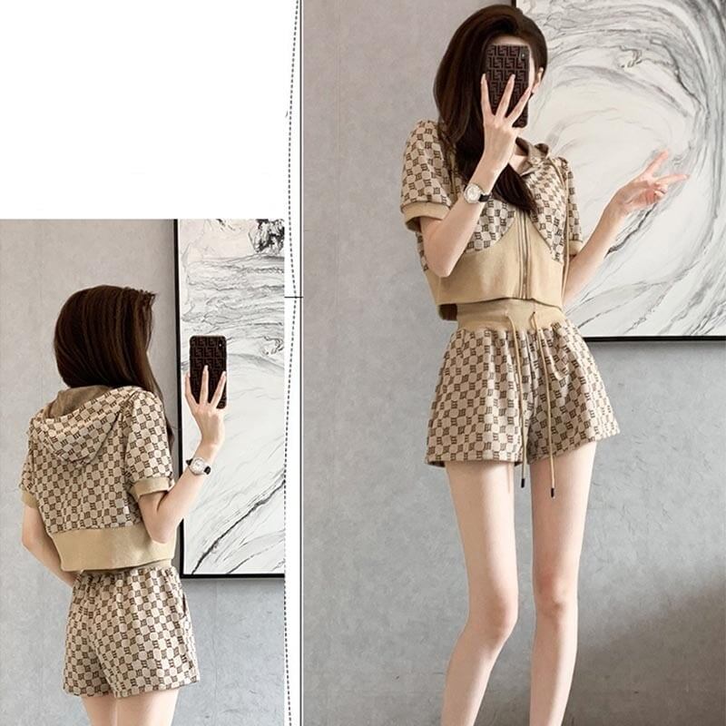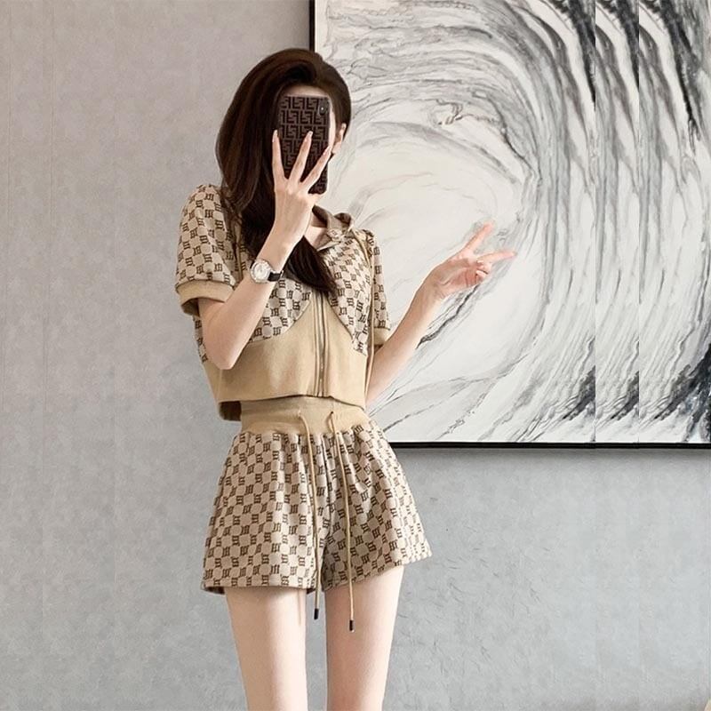 カジュアル オシャレ度満点 切り替え Tシャツ+ショートパンツ セットアップ<ins-3568>