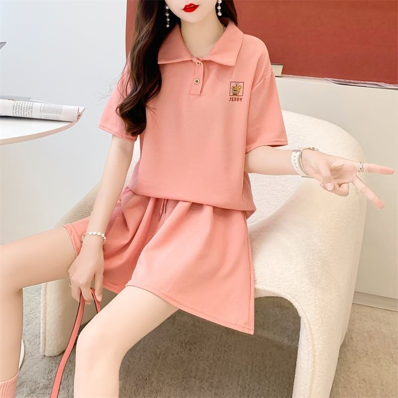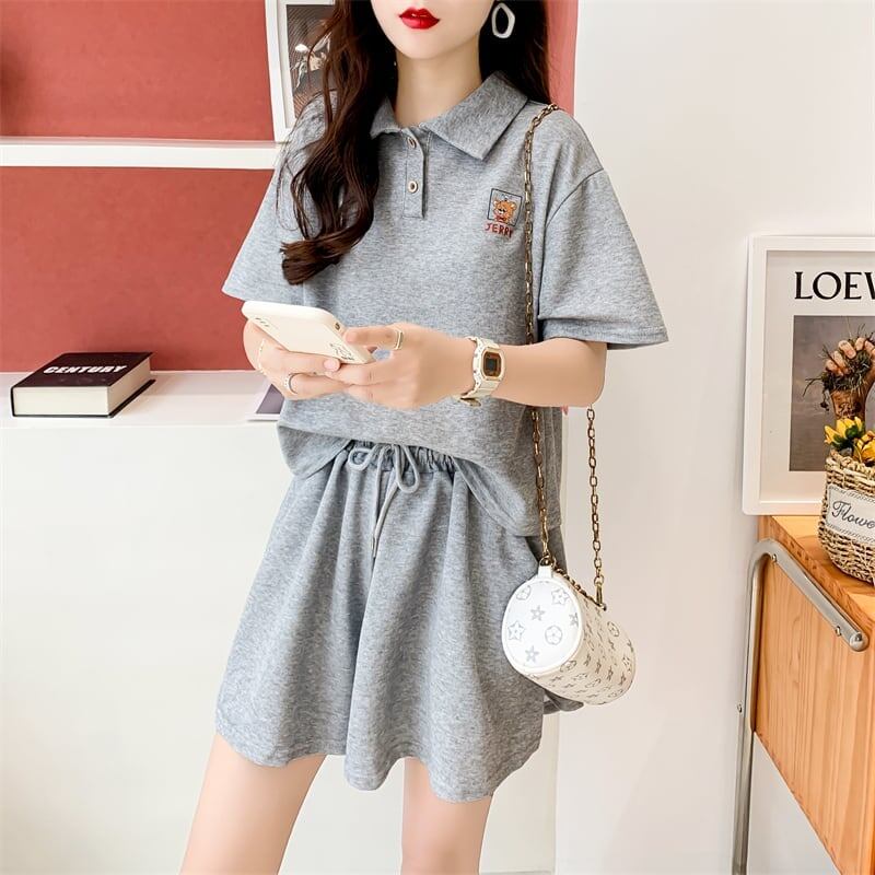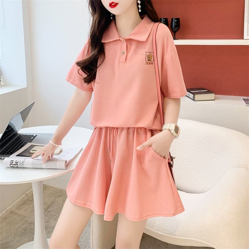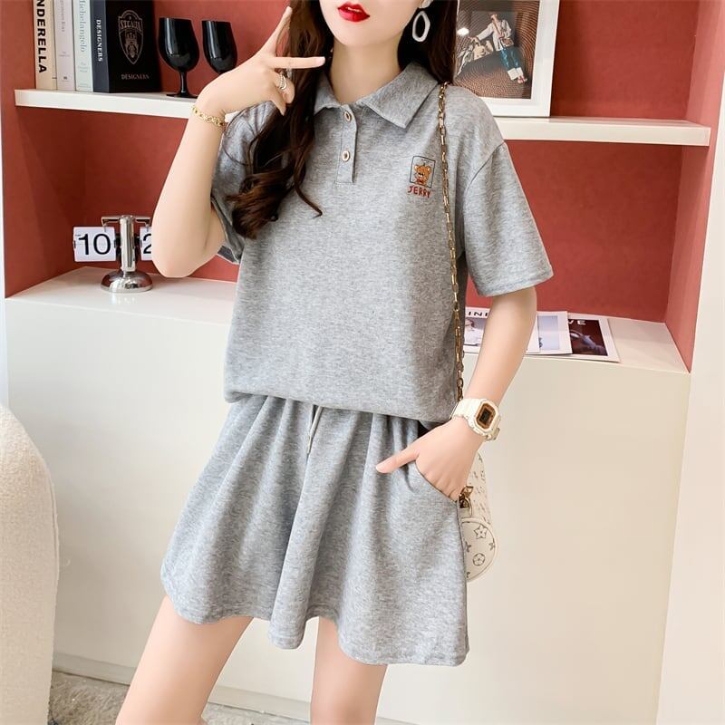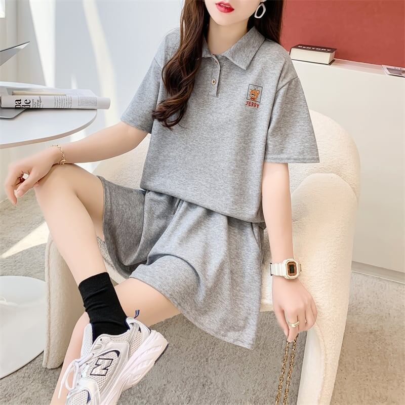 カジュアル オシャレ度満点 切り替え Tシャツ+ショートパンツ セットアップ<ins-3613>
