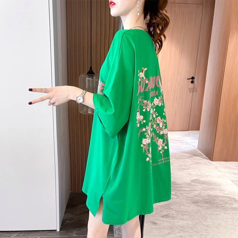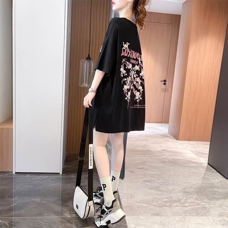 スタイリッシュ 一目惚れ 切り替え プリント Tシャツ カットソー<ins-3619>