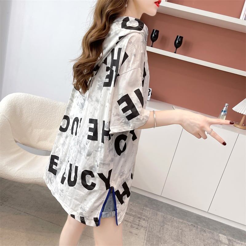 着心地抜群 女性力を高める 切り替え プリント Tシャツ カットソー<ins-3489>
