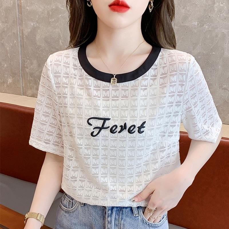 着心地抜群 カジュアル 切り替え プリント Tシャツ カットソー<ins-3562>