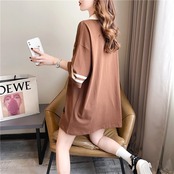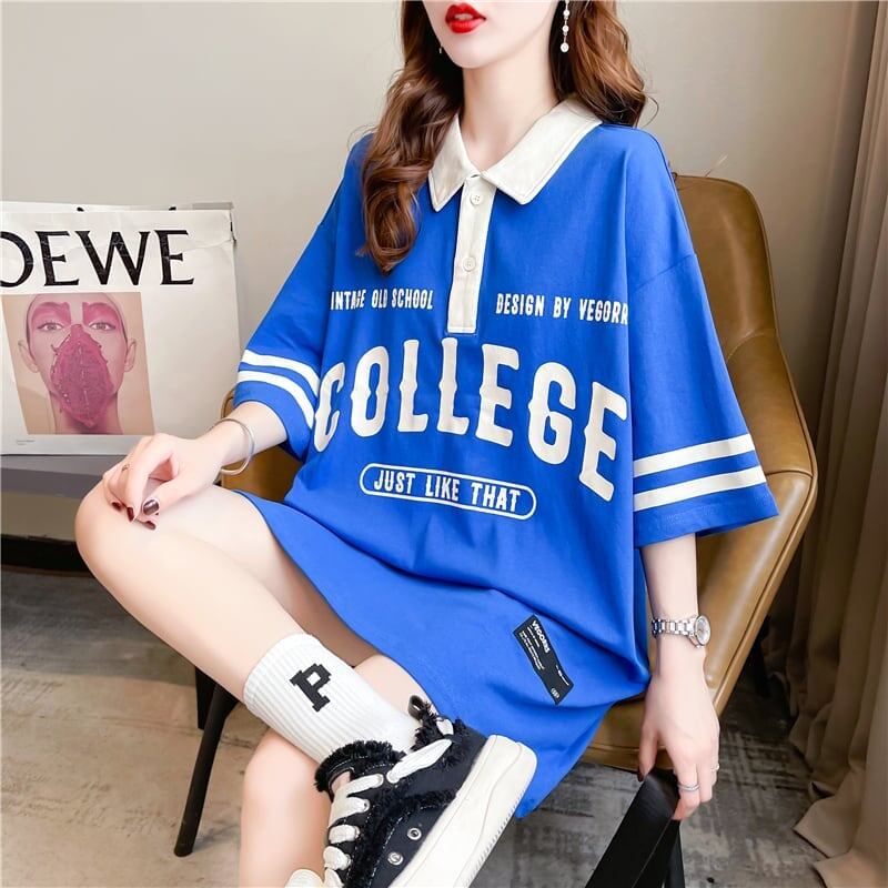 デザイン感 チャーミング 切り替え プリント Tシャツ カットソー<ins-3623>