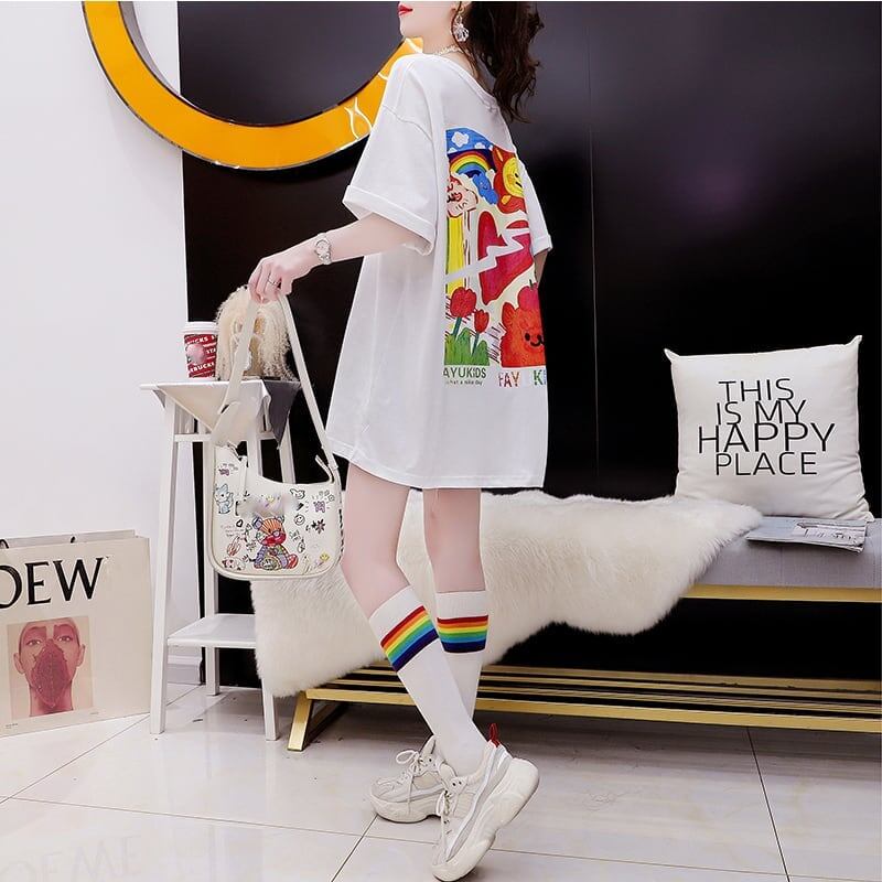 スタイリッシュ 一目惚れ 切り替え プリント Tシャツ カットソー<ins-3531>