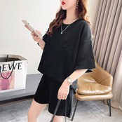 着心地抜群 女性力を高める 切り替え Tシャツ+ショートパンツ セットアップ<ins-3553>