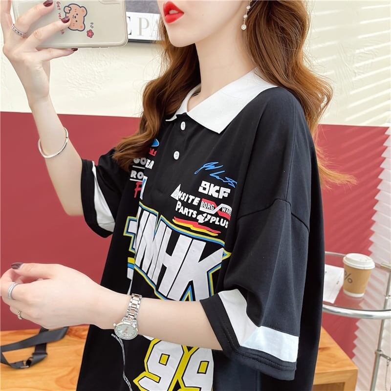 着心地抜群 女性力を高める 切り替え プリント Tシャツ カットソー<ins-3524>
