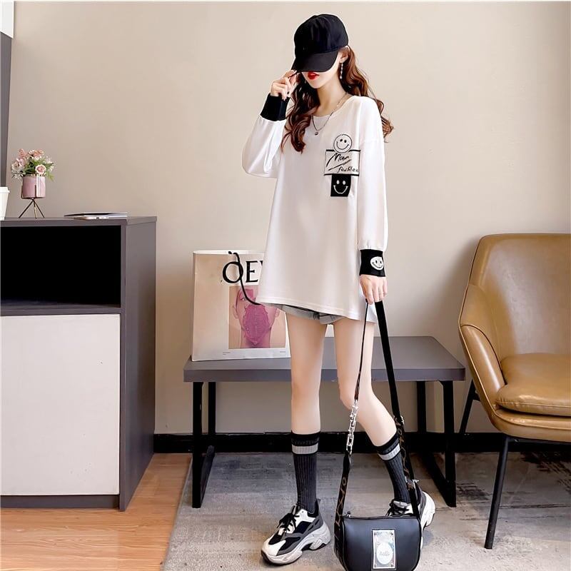 美感いっぱい 好感度満載 切り替え プリント Tシャツ カットソー<ins-3661>