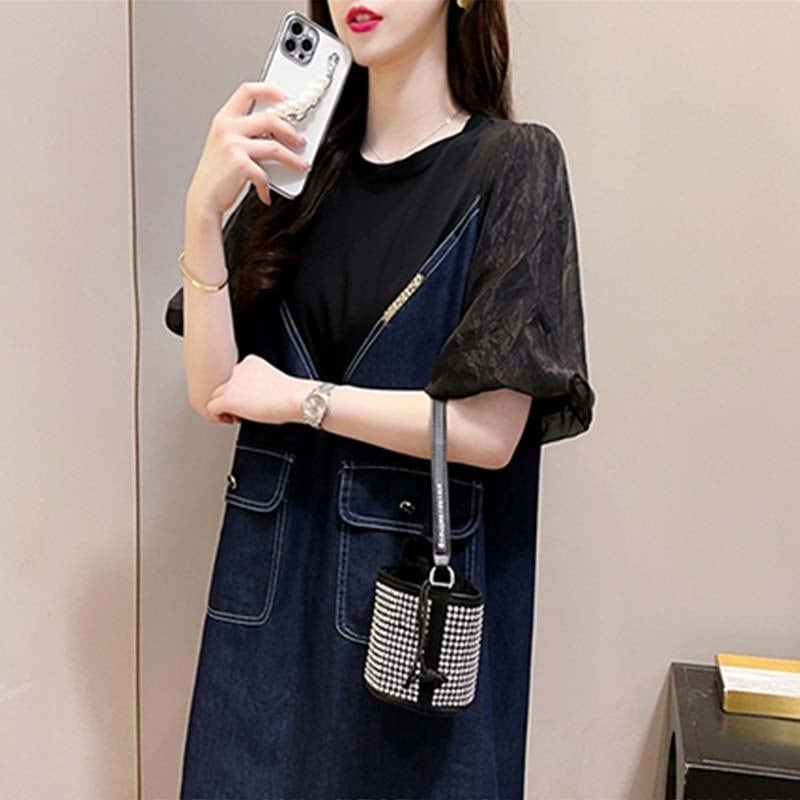 オシャレ度満点 カジュアル 綺麗め 切り替え ワンピース<ins-3600>