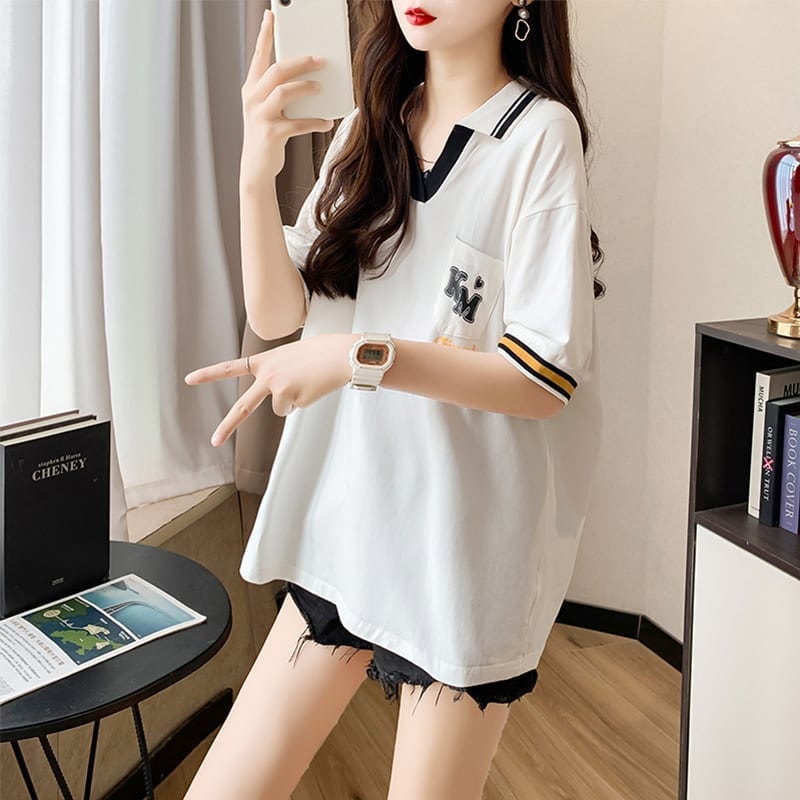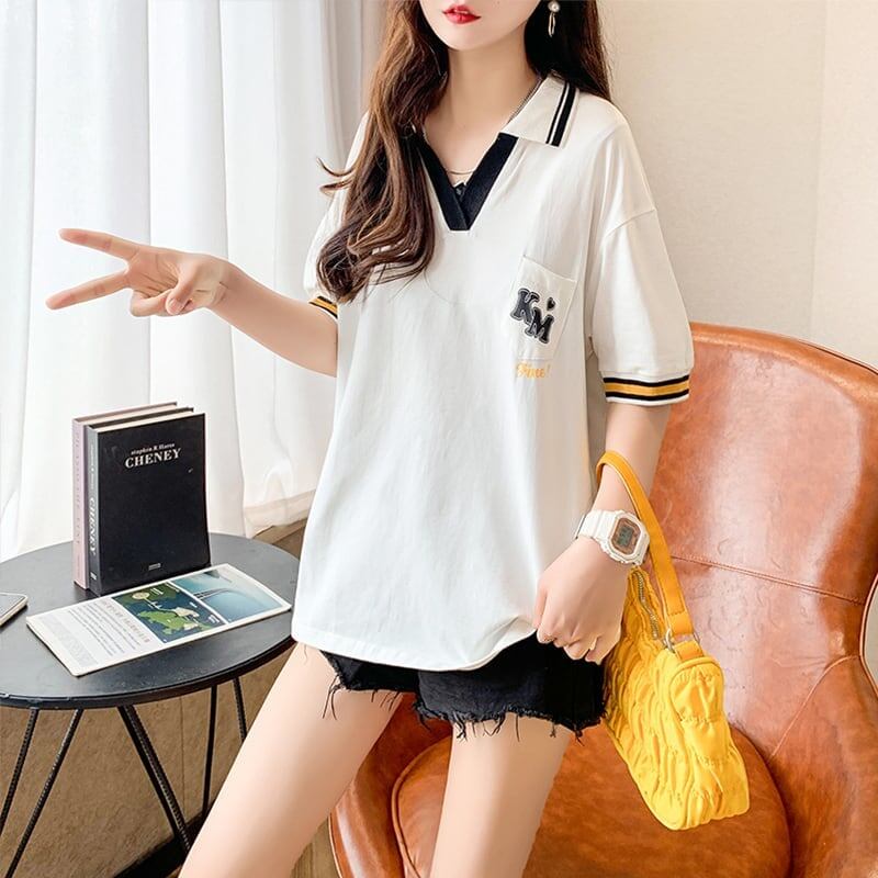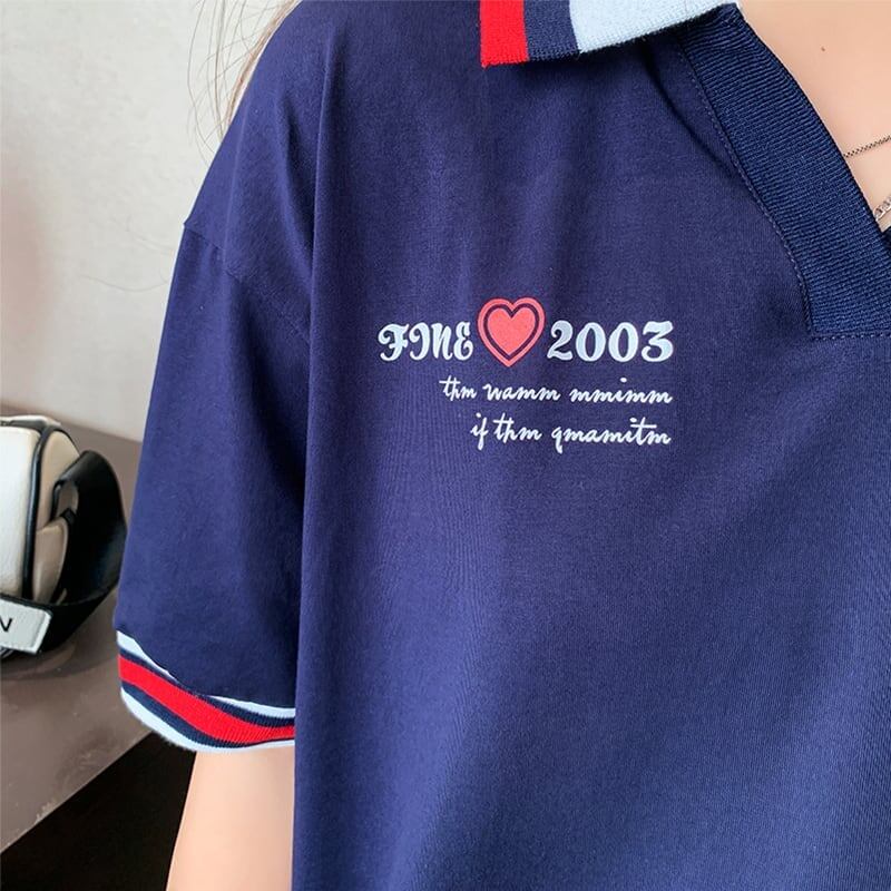 オシャレ度満点 カジュアル 切り替え プリント Tシャツ カットソー<ins-3593>