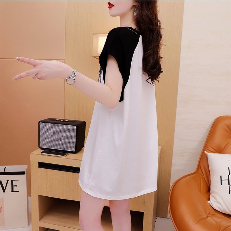 スタイリッシュ 一目惚れ 切り替え プリント Tシャツ カットソー<ins-3513>