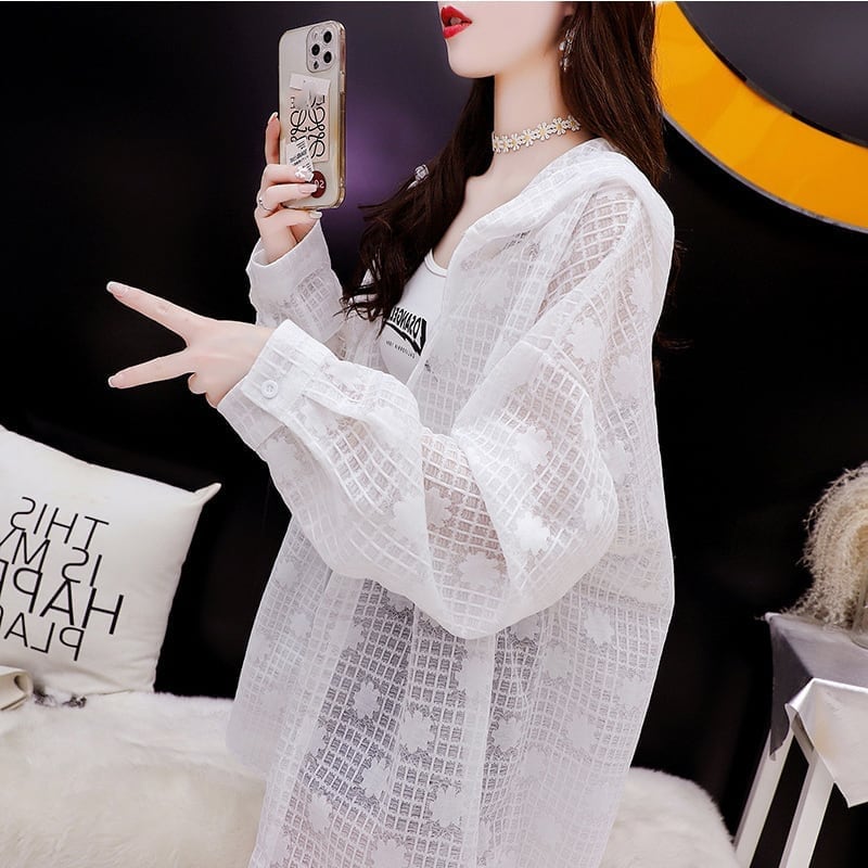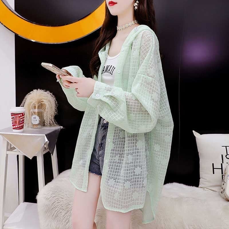 チャーミング 透け感 日焼け対策 切り替え ジャケット ブルゾン<ins-3500>