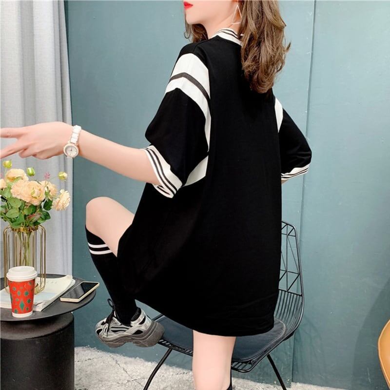 スタイリッシュ 一目惚れ プリント Tシャツ カットソー ワンピース<ins-3605>