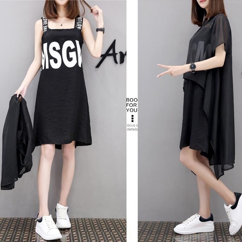 好感度満載 美感いっぱい 切り替え キャミソールワンピース+ジャケット セットアップ<ins-3561>