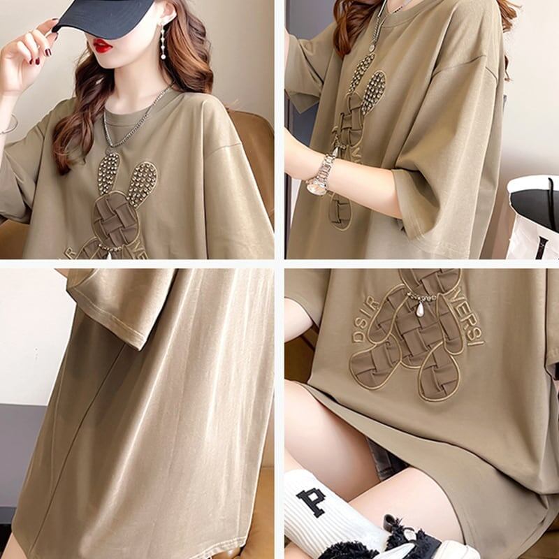 好感度満載 美感いっぱい 切り替え プリント Tシャツ カットソー<ins-3525>