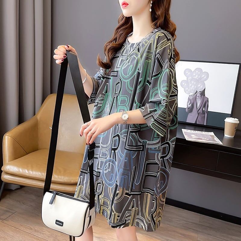 個性的なデザイン 一目惚れ プリント Tシャツ カットソー ワンピース<ins-3502>
