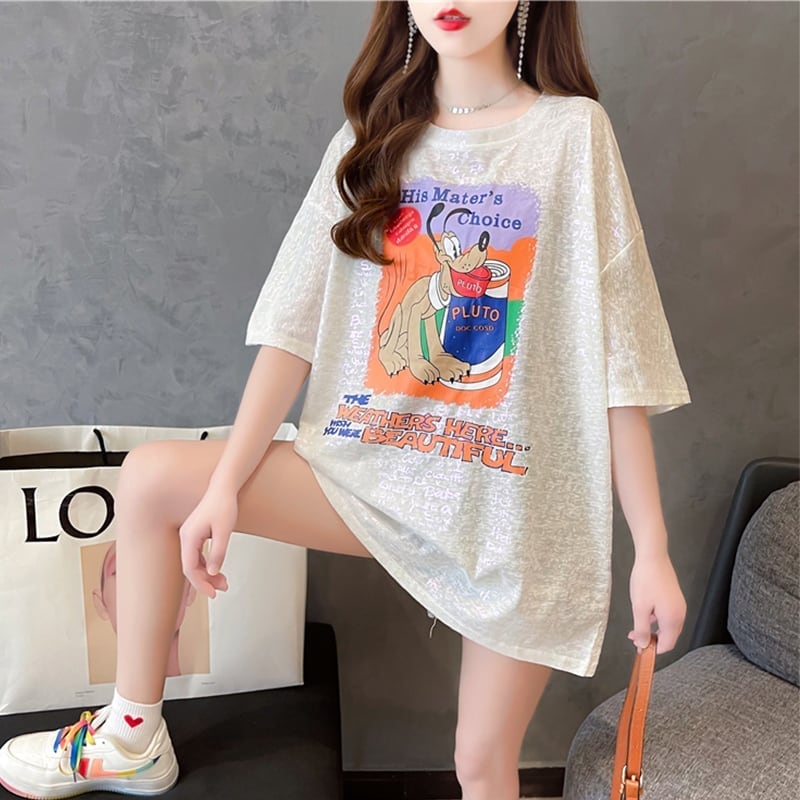 好感度満載 美感いっぱい 切り替え プリント Tシャツ カットソー<ins-3548>
