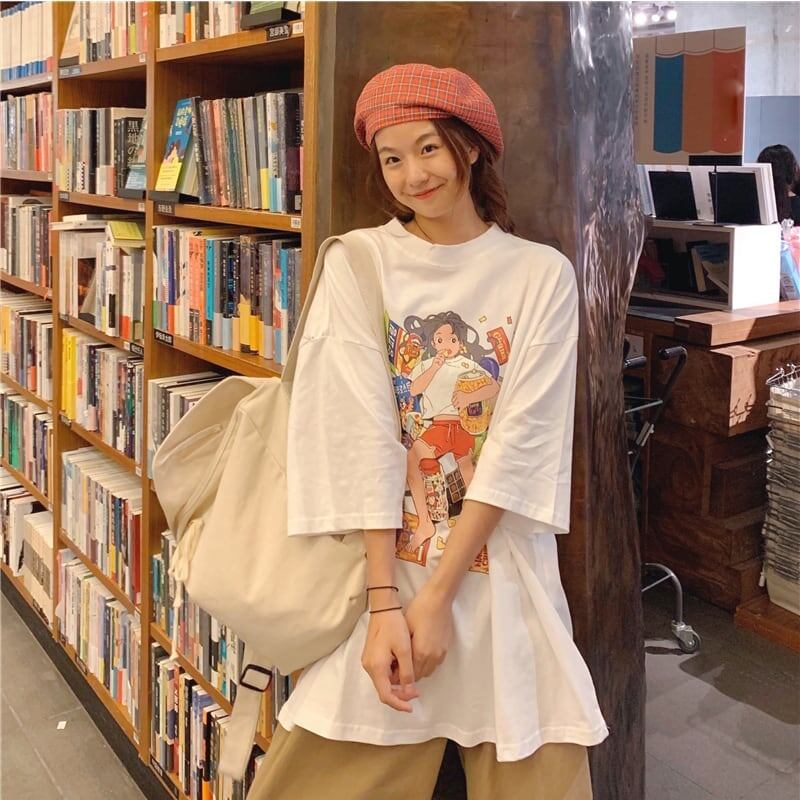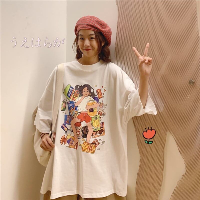 ルーズ オシャレ度満点 切り替え プリント Tシャツ カットソー<ins-3459>