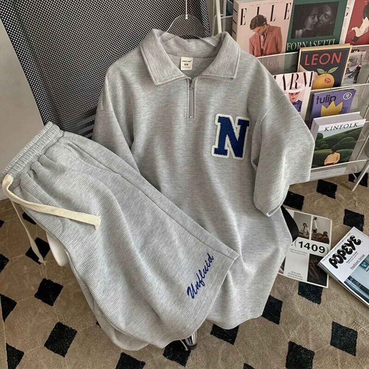 スタイリッシュ 一目惚れ 切り替え Tシャツ+ショートパンツ セットアップ<ins-3555>